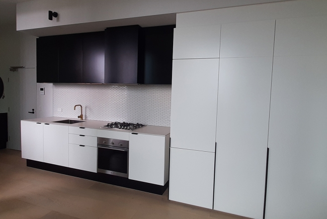 The process involved in creating your new tv-unit, Custom Furniture Cabinet wall unit or other projects from order to installation, is quite involved, speak to your designer for the current waiting times. A cabinetry if installed by CMV Joinery will generally take a qualified tradesman couple of days to fit. You need to allow time for the removal of the existing, possible minor structural work, installing of the new cabinets and over the next couple of days plumbing and electrical. Stone and Glass splashbacks need additional time added.
